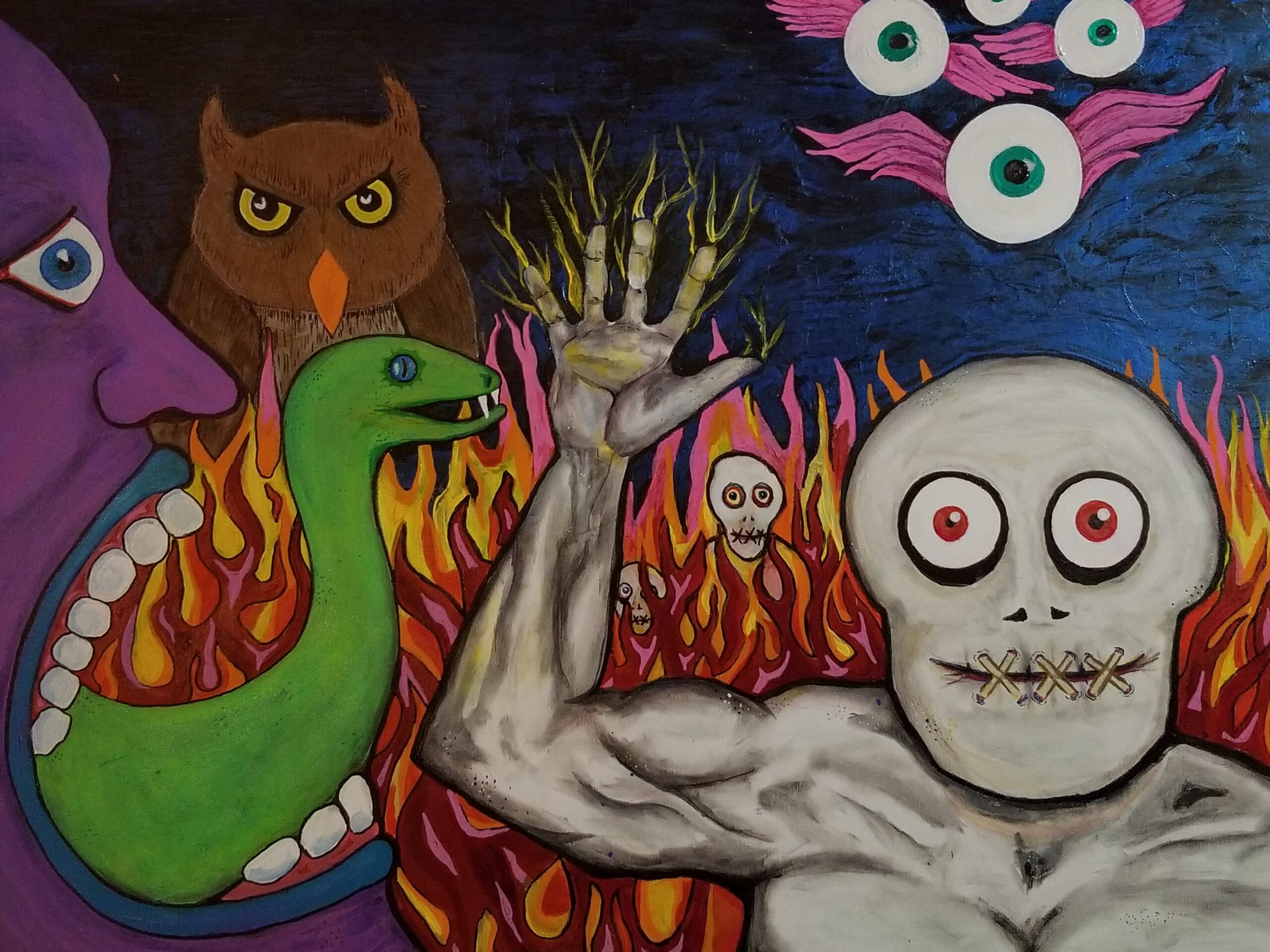 Brian Burke’s hand-painted acrylic artwork reflects decades of experience as a classically trained fine artist. Known for bright colors, rich textures, extreme detail, and unusual subject matter, his paintings balance humor, seriousness, and fun all at once. Drawing from fine art, street art, and mural work, Brian creates visually stimulating pieces that are powerfully engaging and instantly recognizable.